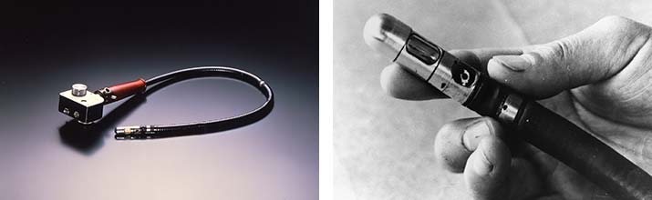 内視鏡は人体の中を見ることを目的とした医療機器です。オリンパスの内視鏡の歴史は、1950年に世界初の実用的な胃カメラを開発、1952年にガストロカメラ「GT-I」の発売に始まります。「人体内を直接撮影することができればガンを早期発見できる」という医療従事者とオリンパス開発者の想いから誕生しました。