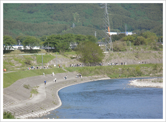 (公財)長野県テクノ財団 伊那テクノバレー地域センター リサイクルシステム研究会が主催する、天竜川水系環境ピクニックに、毎年、約150名の社員と家族が参加し、ごみ拾いを行うことにより、地域の環境美化に努めています。